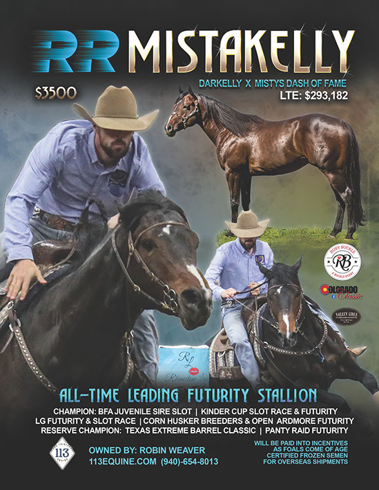 1st Dam: MISTYS DASH OF FAME - All-Time Leading Barrel Racing Producing Mare - RR Mistakelly $293,182, KN Fabs Gift of Fame $194,010, Jets Heart n Soul $150,000+,