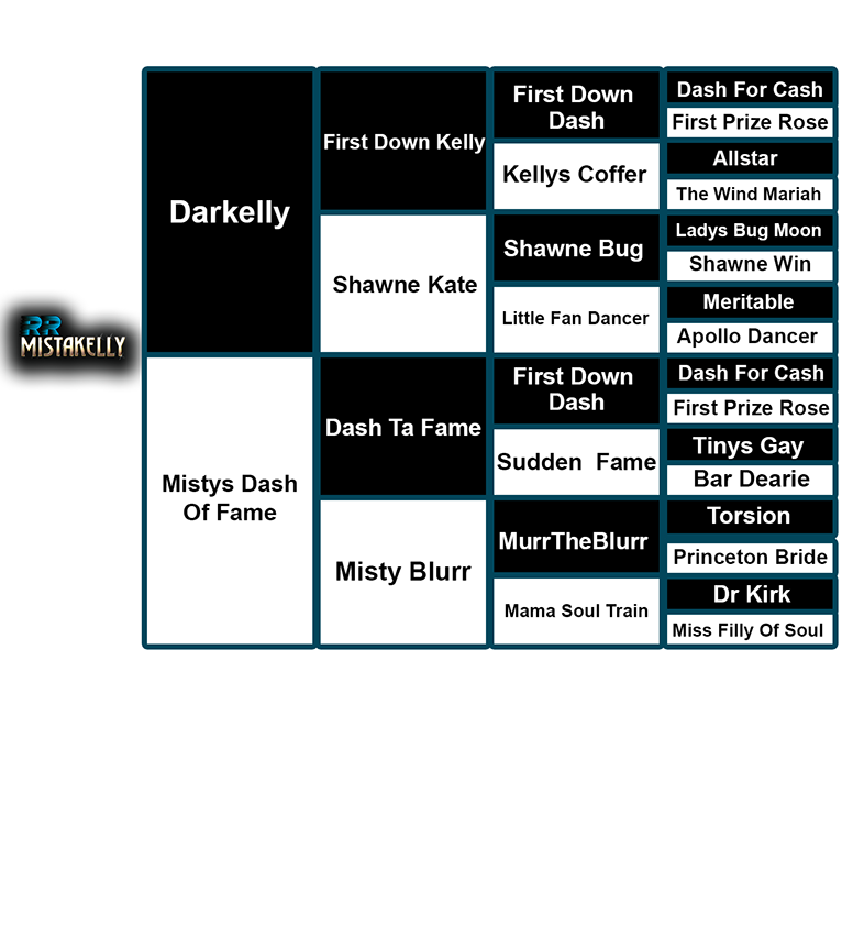 SIRE: DARKELLY CP Dark Moon $431,891, Kellies Chick $325,284, RR Mistakelly $293,182, Cfour Darkpatchpatsy $102,600, Miss Dark Flash $26,668, CP Medina $24,282, Sheza Pepper $20,308, Dws First $19,354,